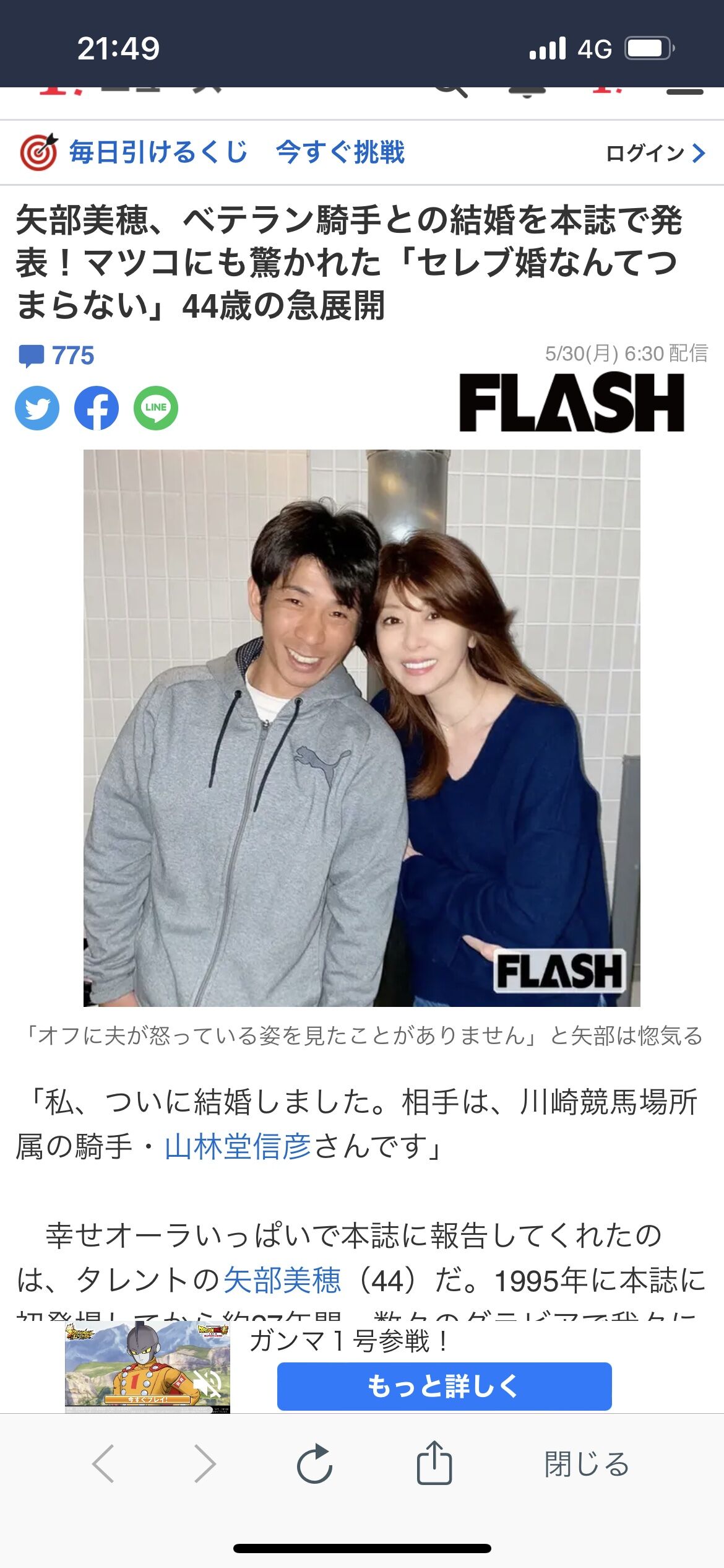 「私、ついに結婚しました。相手は、川崎競馬場所属の騎手・山林堂信彦さんです」