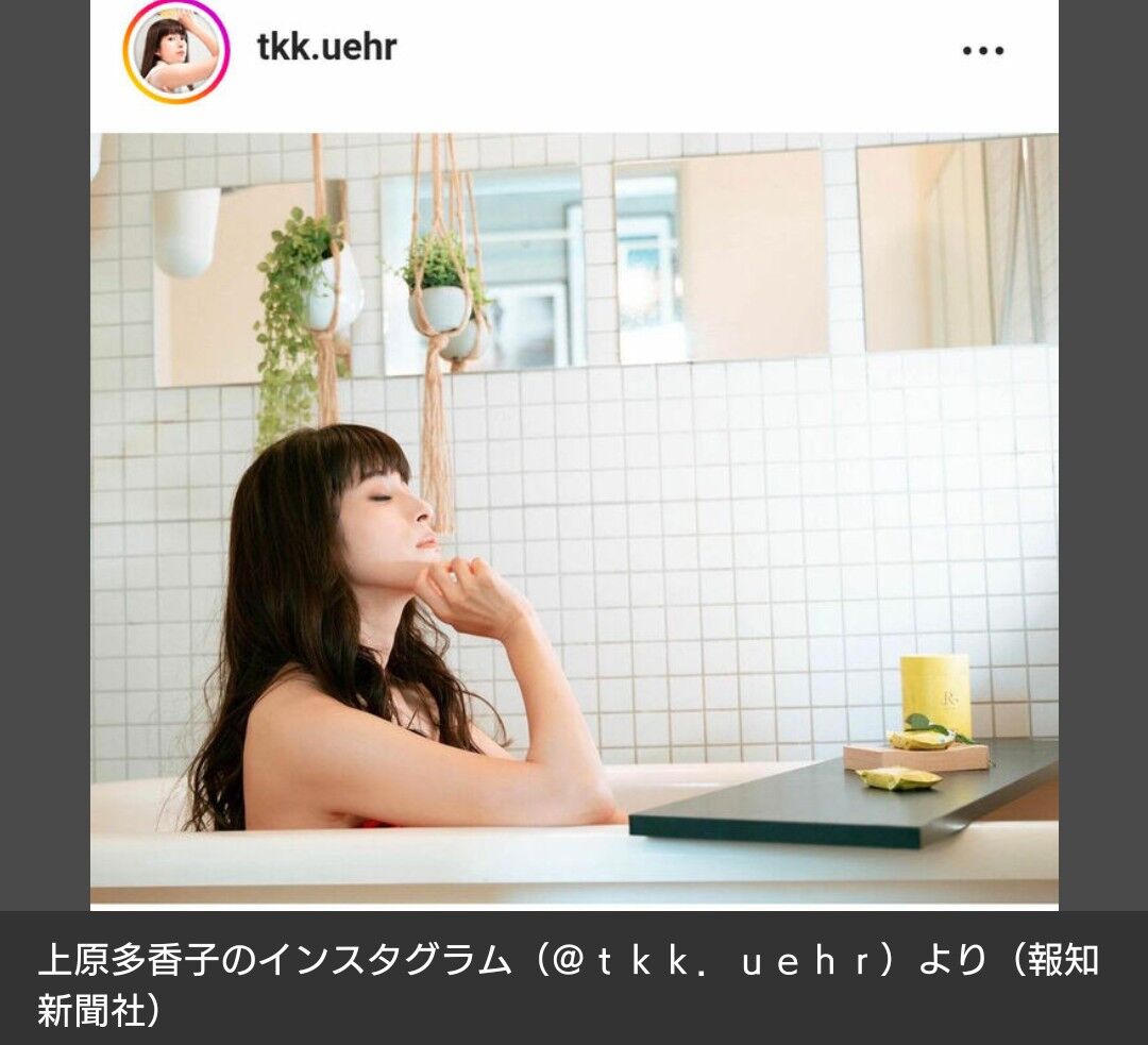 元「SPEED」の上原多香子(39)が18日に自身のインスタグラムを更新し、バスタイム中の美肌ショットを公開した。